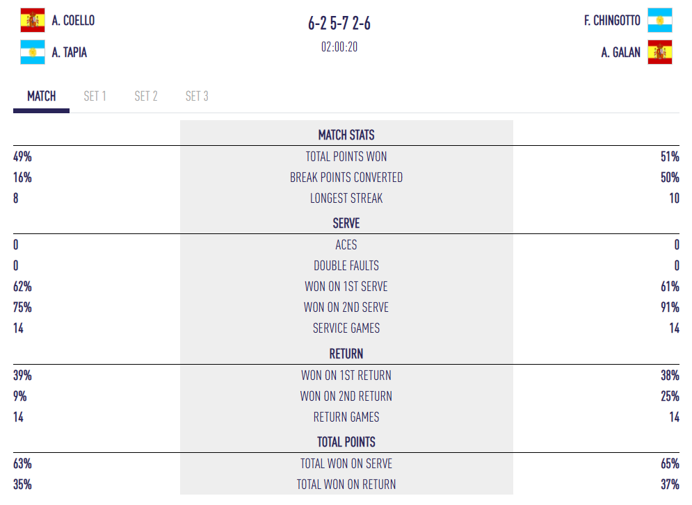 El tercer set és una demostració. Galán es torna incontrolable. En una pista lenta, ho para tot: els smashs de Tapia i Coello. El duo “Chingalán” trenca des de l’inici, pren el control del partit i no retrocedeix. A 3/1, obtenen diverses boles de doble trencament, i després concreten a 4/2 per encarar cap a la victòria. 6/2, fi de la història.