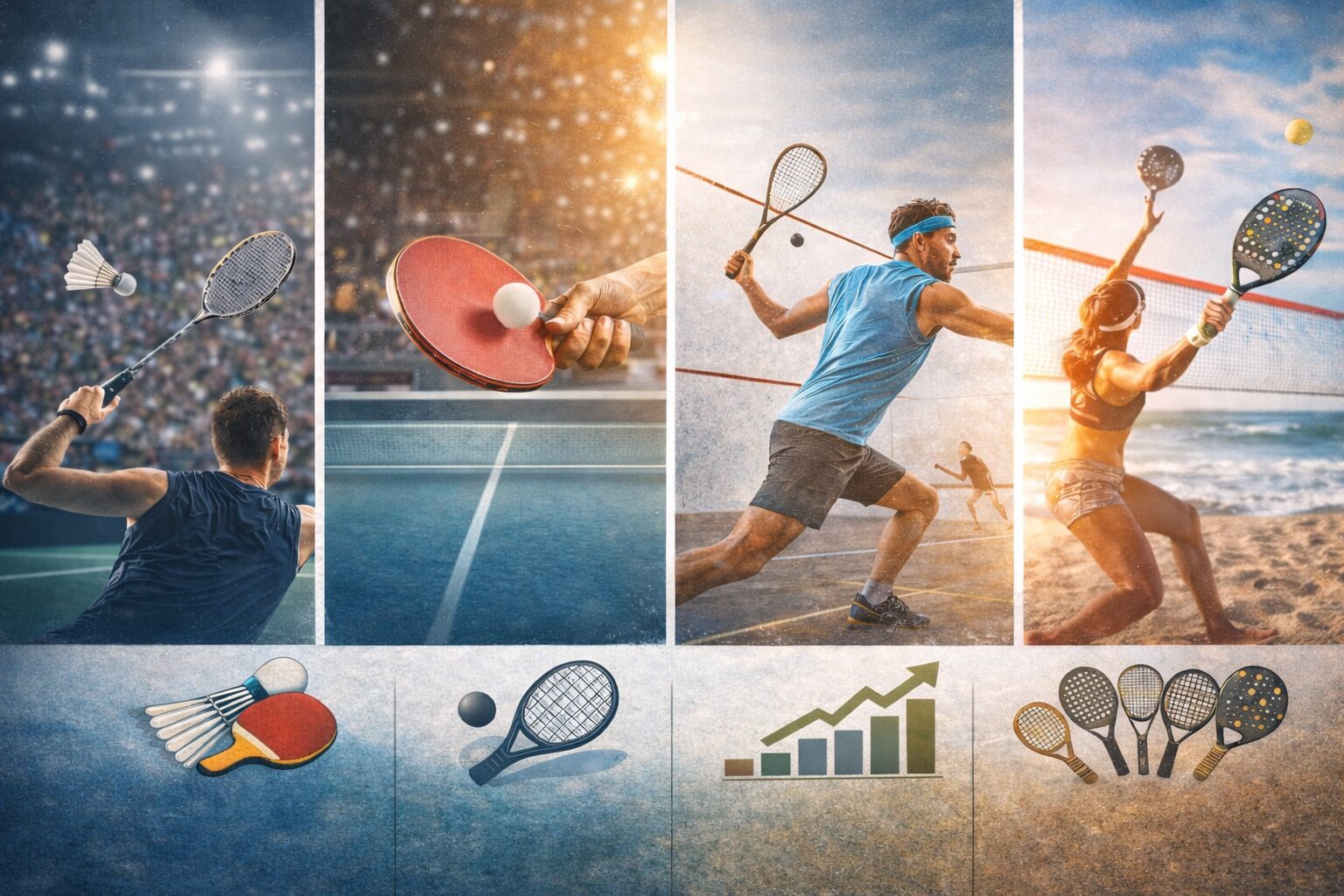 Mentre el padel, el pickleball i el tennis concentren l’atenció mediàtica, una realitat més profunda estructura el mercat mundial dels esports de raqueta. En segon terme, disciplines menys visibles — bàdminton, tennis de taula, squash, racquetball, beach tennis, platform tennis o real tennis — configuren, però, la participació, la formació dels jugadors, l’economia dels clubs i els models d’infraestructures.