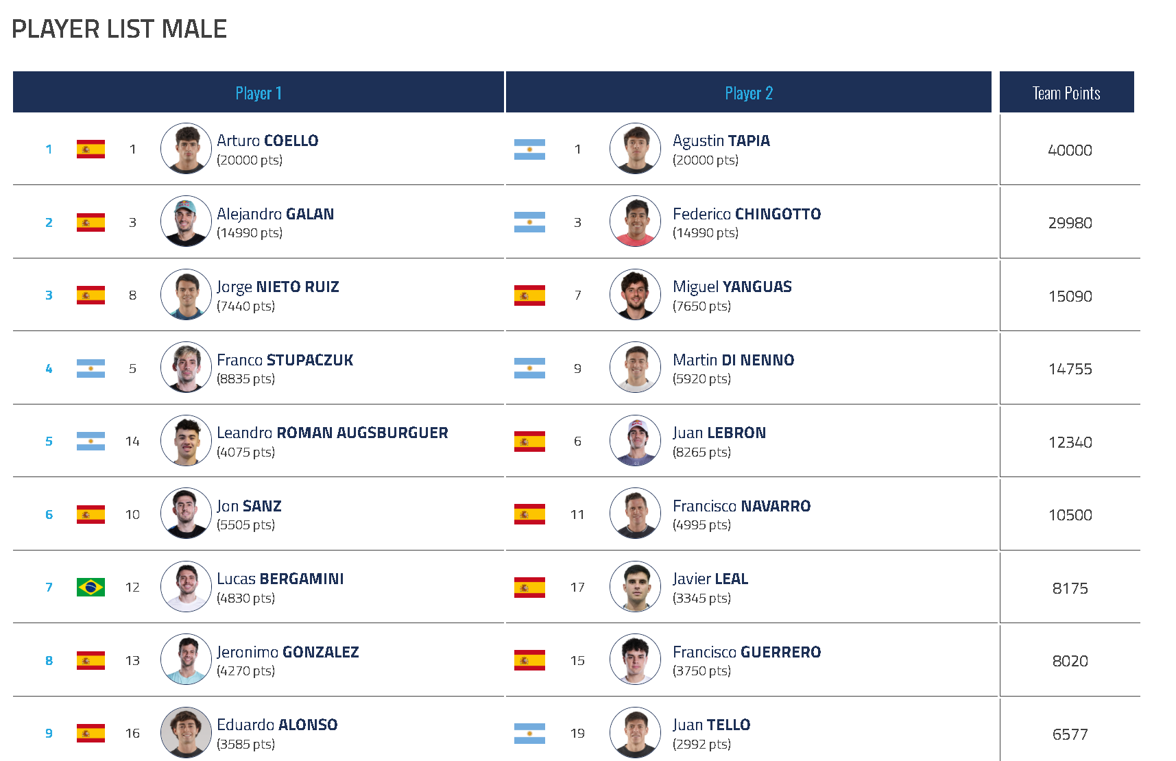 A Dubaï P1, que començarà el 9 de novembre vinent, Lebrón i Franco Stupaczuk encara seran caps de sèrie núm. 3, mentre que Augsburger i Martín Di Nenno ocuparan la cap de sèrie núm. 6.