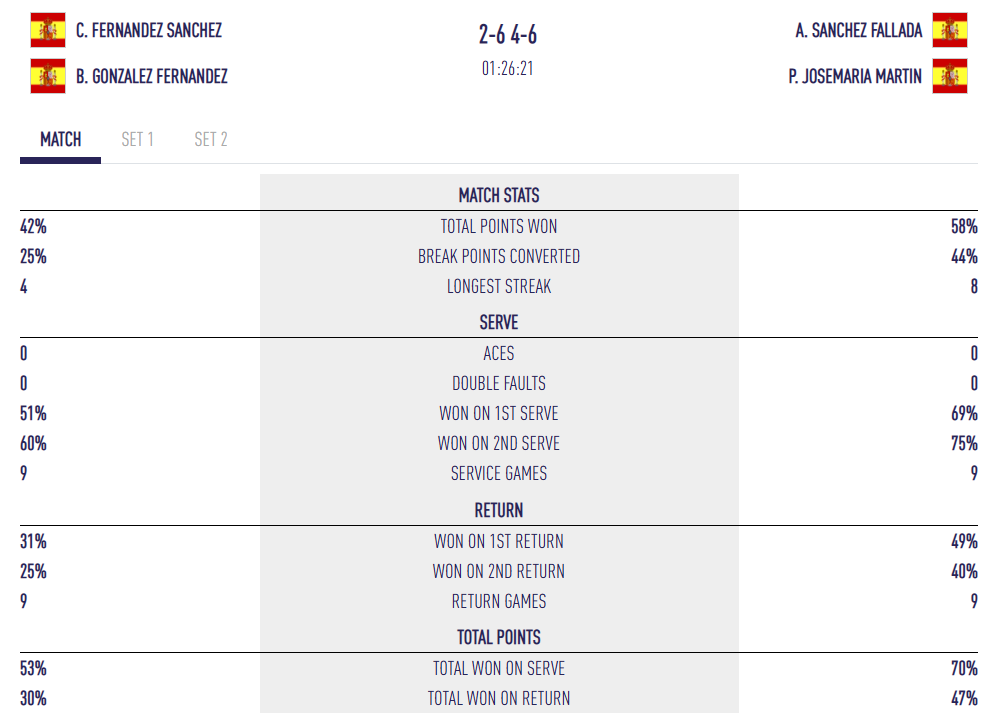 La seva dominació davant de González i Fernández continua: 7 victòries a 1 en les seves confrontacions directes. Bea i Claudia mai han trobat la solució davant la varietat i la lectura de joc de les dues espanyoles. Claudia, especialment, pateix sempre a la seva diagonal davant la força de Paula Josemaría.