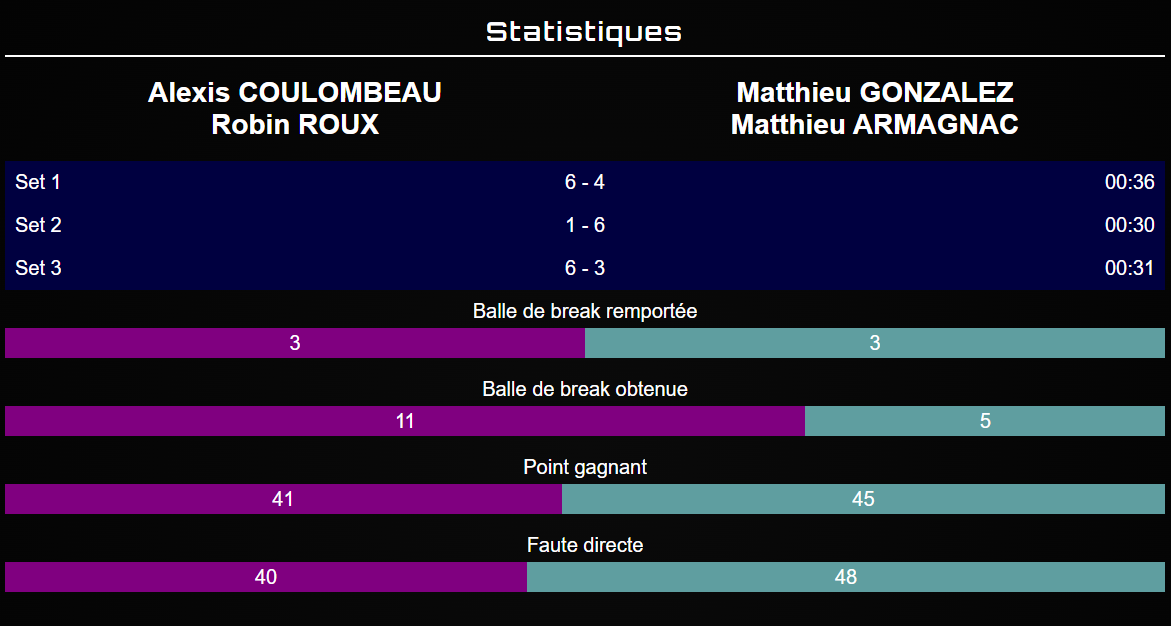 La cap de sèrie núm. 4, Matthieu Gonzalez / Matthieu Armagnac, comença amb força: 4-1 en un instant, molta intensitat, un joc agressiu.