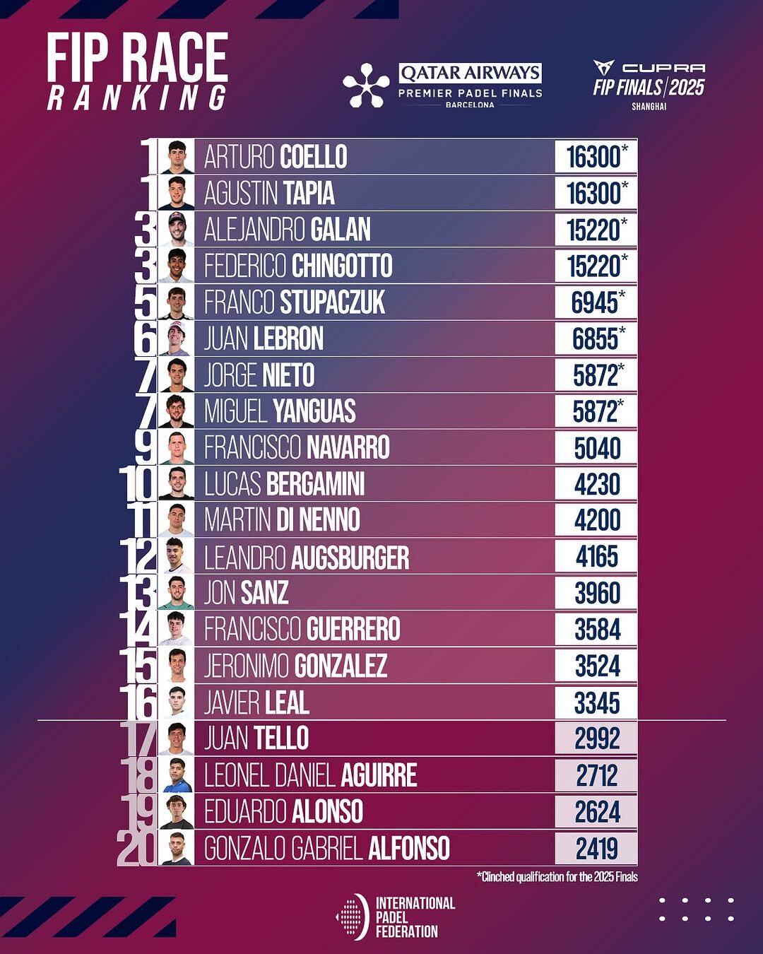• Juan Tello (17è): pot tornar a estar a només algunes unitats del Top 16 en cas de victòria.