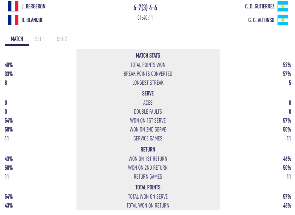 Tot i haver estat derrotats, Bergeron i Blanqué han ofert una gran actuació, davant d’una parella mundial de primer nivell. Acaben amb unes estadístiques molt similars a les dels seus adversaris (3 boles de trencament convertides contra 4), prova que la diferència s’ha jugat en detalls i l’experiència en els moments decisius.