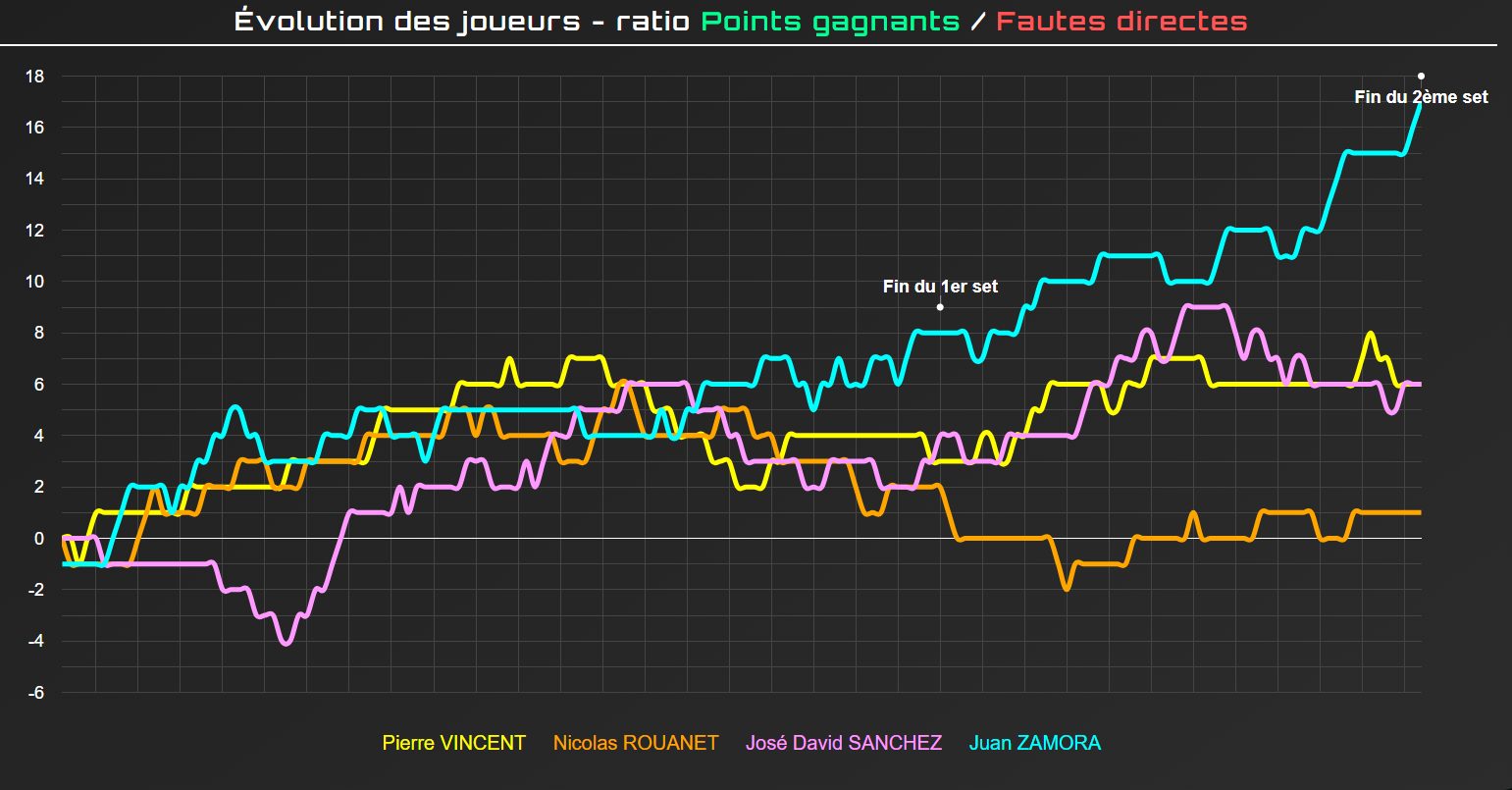 Encara que el resultat final és una derrota, el contingut és molt encoratjador per a Rouanet i Vincent. Han demostrat que poden dominar una parella espanyola sòlida, rivalitzar en els intercanvis i imposar el seu joc per sequències.