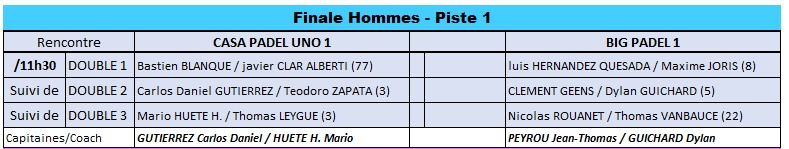 Casa Padel tria llançar la final amb Bastien Blanqué i Javier Clar Alberti, alineats en el doble n°1. La parella no havia necessitat jugar el tercer partit a les semifinals, ja que la qualificació s’havia aconseguit ràpidament, i arriba per tant fresca per a aquest primer xoc.