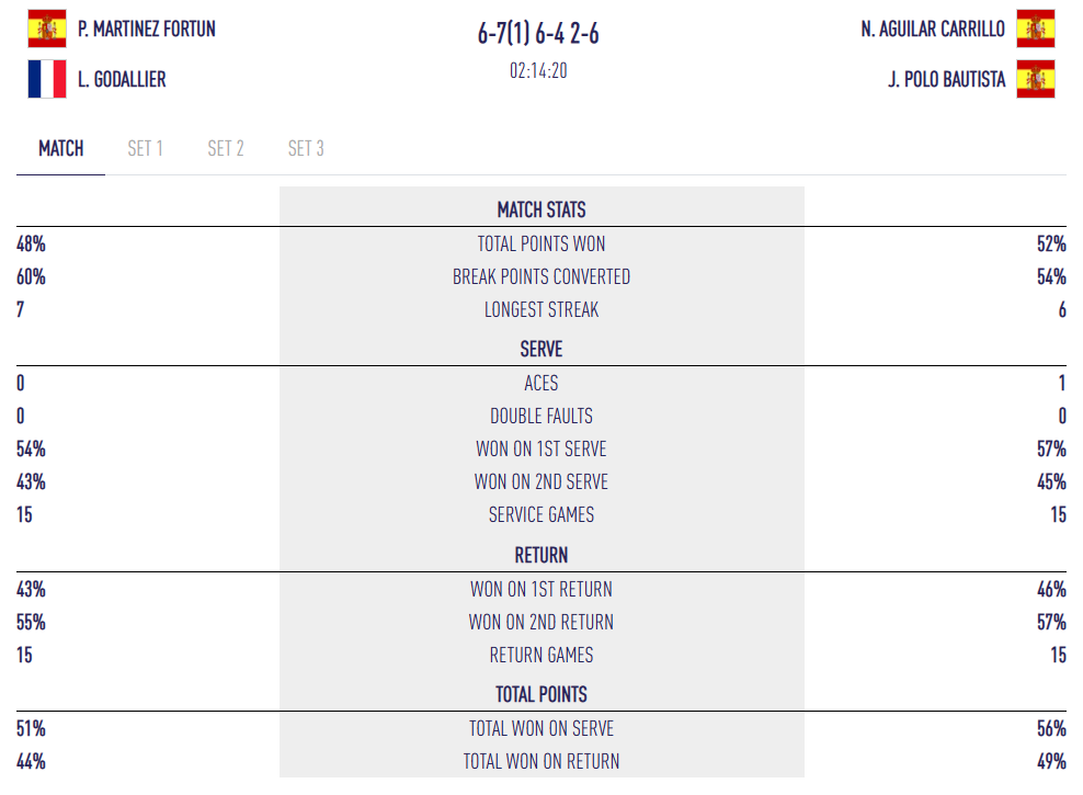 Però el tercer acte gira a favor d’Aguilar i Polo. Més efectives en els seus serveis (57 % de punts guanyats en primera bola), prenen ràpidament un marge i s’imposen 6/2 després de 2h14 de partit.