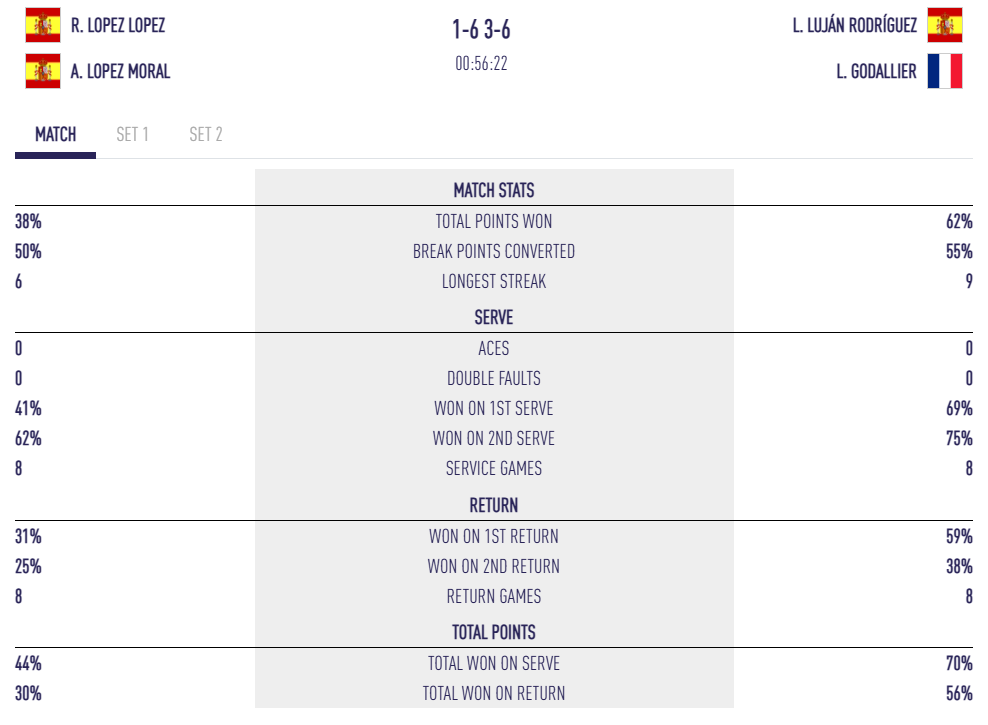 En aquest últim partit de les qualificacions, Godallier i Luján es van enfrontar a les favorites número 5, Rebeca Lopez Lopez i Amanda Lopez Moral. Un partit perfectament controlat per Léa i Laura, que es van imposar 6/1 6/3 en només 56 minuts, confirmant el seu estatus de favorites número 2 de les qualificacions.