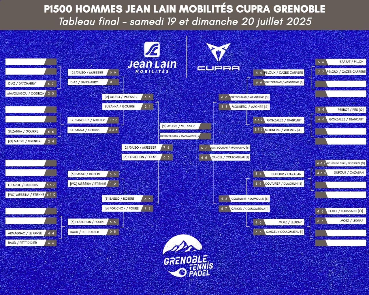 Yanis Muesser i Quentin Ayuso han aconseguit la seva venjança! Finalistes desafortunats en dues ocasions aquesta temporada en P1500, els dos jugadors han trobat aquesta vegada la manera de guanyar. A Grenoble, aconsegueixen el títol, imposant-se a la final davant Morgan Mannarino i Charles Gortzounian (TS5) amb un resultat de 6/1 6/7 6/3.