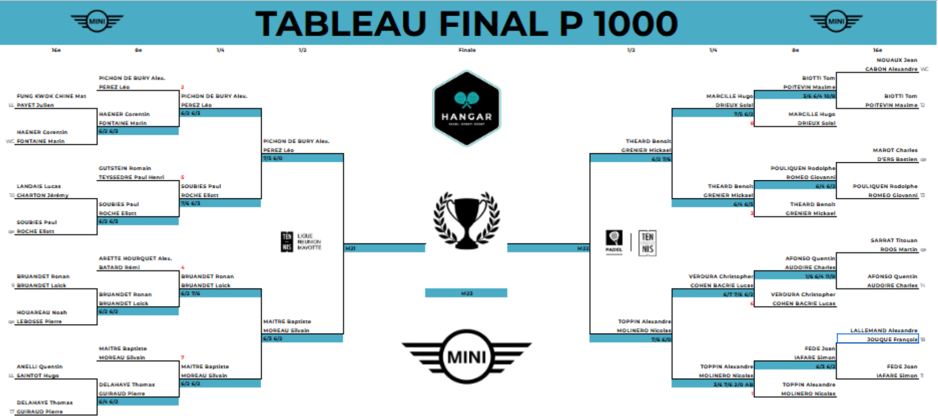 El P1000 del Hangar a La Reunió ha donat el seu veredicte durant els quarts de final. En general, els caps de sèrie han mantingut el seu lloc, confirmant la jerarquia esperada, tot i que alguns duels han estat més ajustats del que suggereixen els resultats.