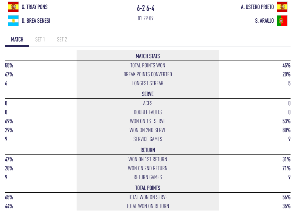Tapia i Coello han dominat àmpliament el partit amb 50 punts guanyadors contra 27, i sobretot sense concedir la més mínima bola de break en el segon set. Un signe de força addicional per a una parella que buscarà demà la seva 10a final de la temporada 2025, la 7a consecutiva, i el seu 27è títol comú.